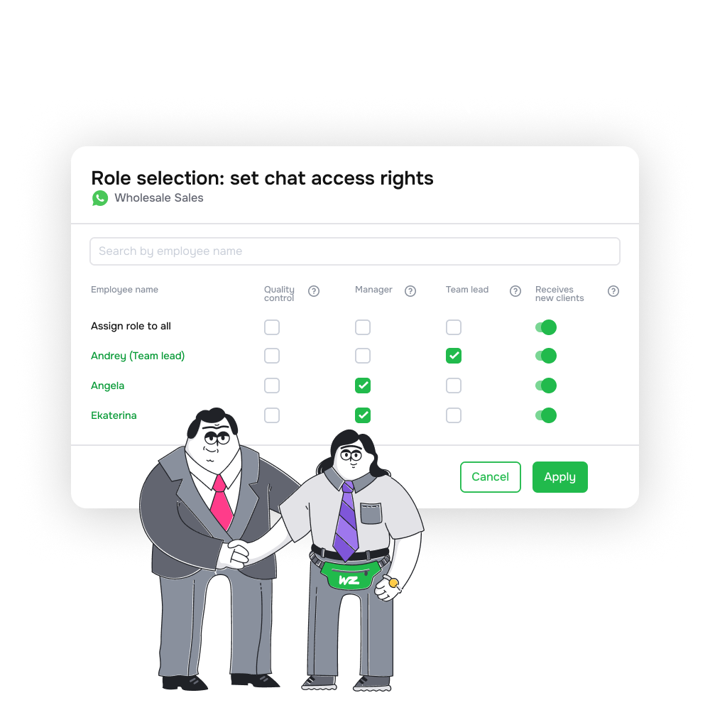 Managers don’t get lost in chats — they only see chats with their own clients, while the team lead sees everything