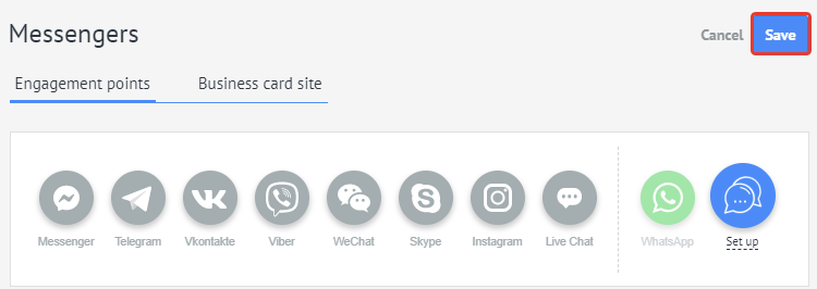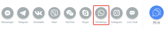 Para añadir un canal de WhatsApp al botón, haz clic en el icono de WhatsApp: