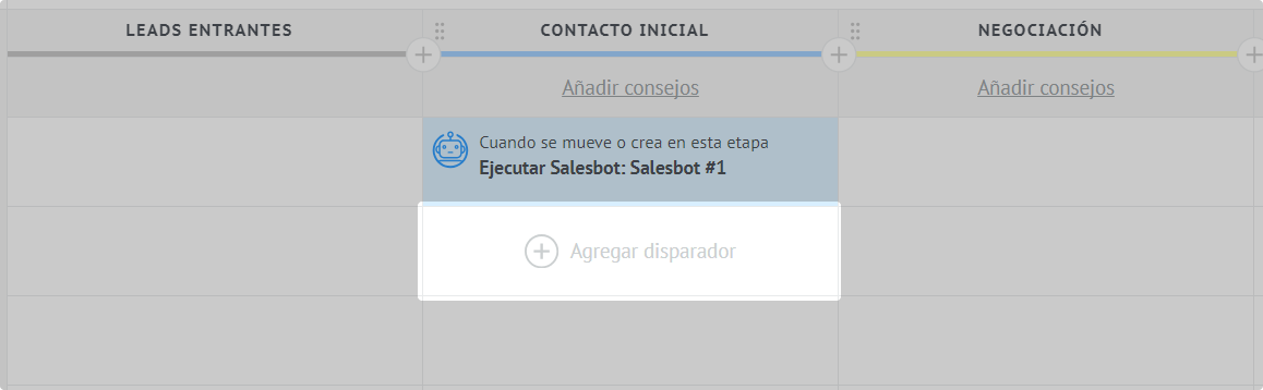 2. Haga clic en una celda vacía debajo de la etapa a la que desea enviar mensajes — así es como crearemos un disparador.