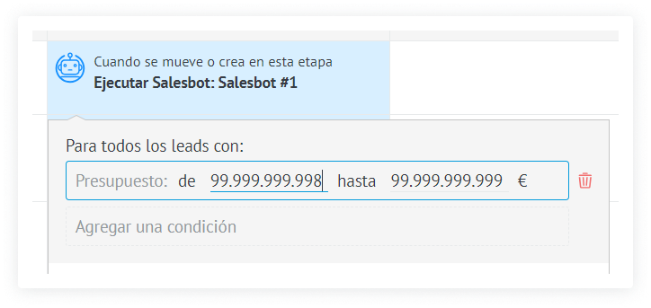 Si especifica una condición para que el disparador funcione, que no coincidirá con ningún lead, no habrá nadie que deje el mensaje. La condición de la captura de pantalla de abajo servirá. A no ser que vendas yates e inmuebles de lujo, claro.