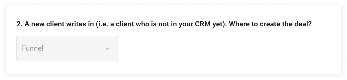 Cuando un nuevo cliente envía un mensaje, se crea un trato. En qué embudo se creará el trato y quién de los usuarios recibirá la solicitud depende de la configuración en la interfaz de Wazzup.