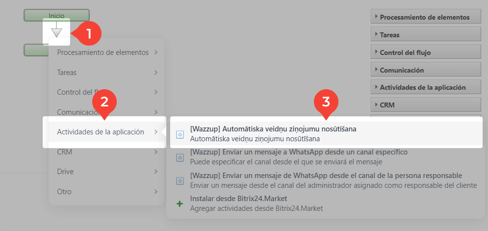 Escriba desde un canal específico a un número o nombre de usuario desde un campo específico de Bitrix24: