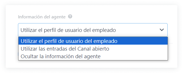 "Ocultar la información del agente" — los mensajes salientes no tendrán una firma con el nombre del representante de ventas.