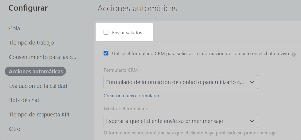 4. Vaya a la sección "Acciones automáticas". Desactiva el ajuste "Enviar saludos".