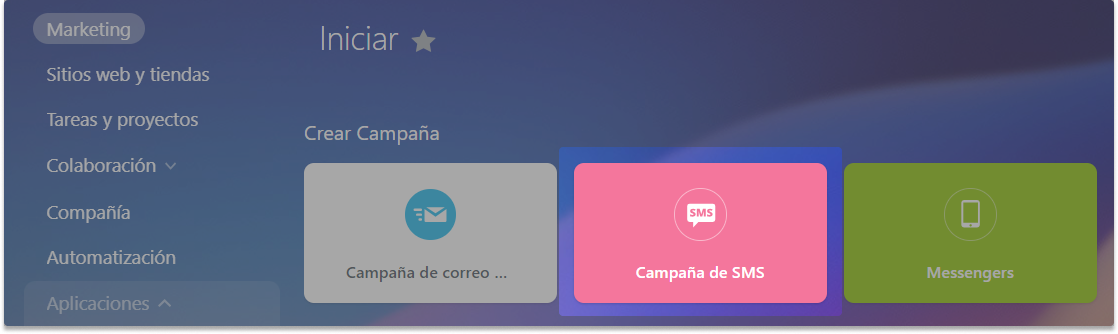 1. En la pestaña "Iniciar" → en la sección "Crear campaña", seleccione "Campaña de SMS". Aunque seleccionemos este tipo, los mensajes seguirán yendo a messengers.