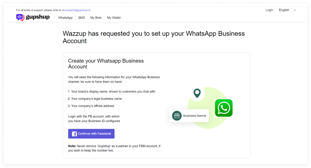 Necesitarás acceso al número WABA y a la cuenta de Facebook a la que está conectada la cuenta Meta business con el número WABA requerido.