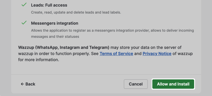 5. Desplácese por la lista de permisos de la aplicación y haga clic en “Allow and Install”.