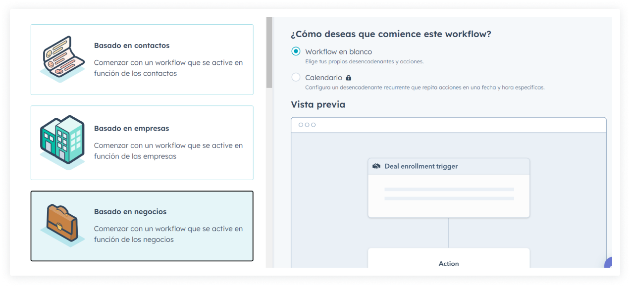 3. Seleccione el elemento deseado. En nuestro ejemplo, el robot procesará ofertas, por lo que elegimos "Basado en negocios".