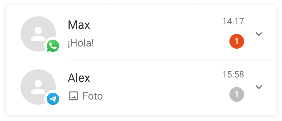 Un vendedor con el rol "Jefes" recibe notificaciones sólo en los chats de los que es responsable. Los iconos de "sin respuesta" en dichos chats serán de color rojo.