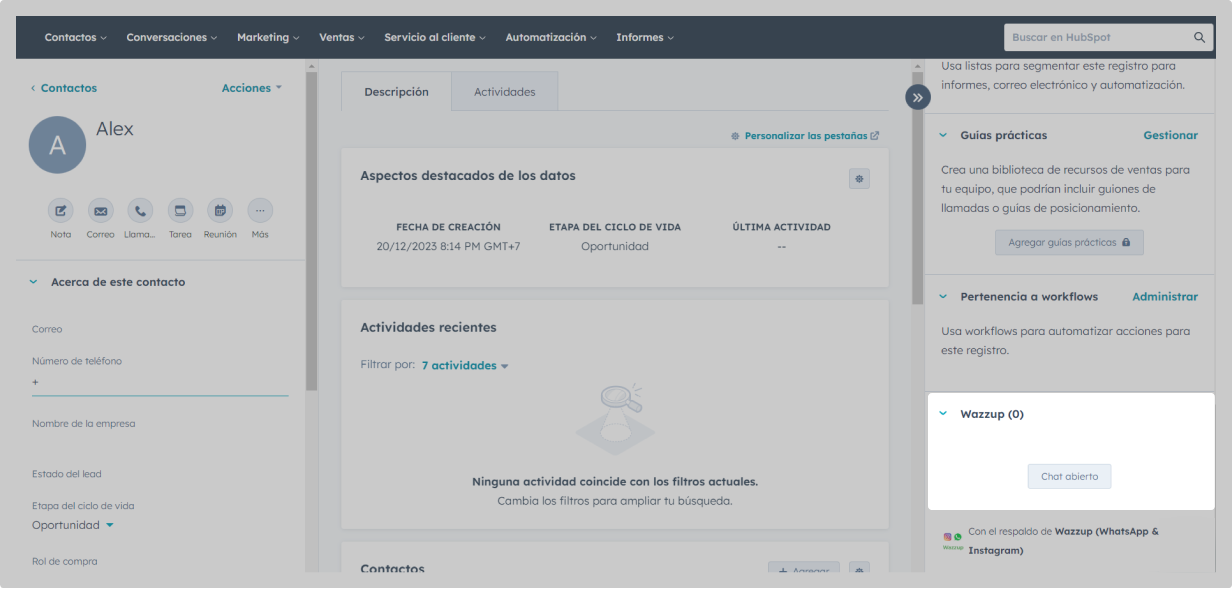 2. En el menú "Wazzup" de la derecha, haz clic en "Chat abierto".