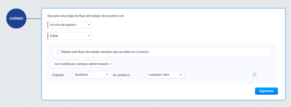 En el paso "Cuándo", elija cuándo funcionará el activador: