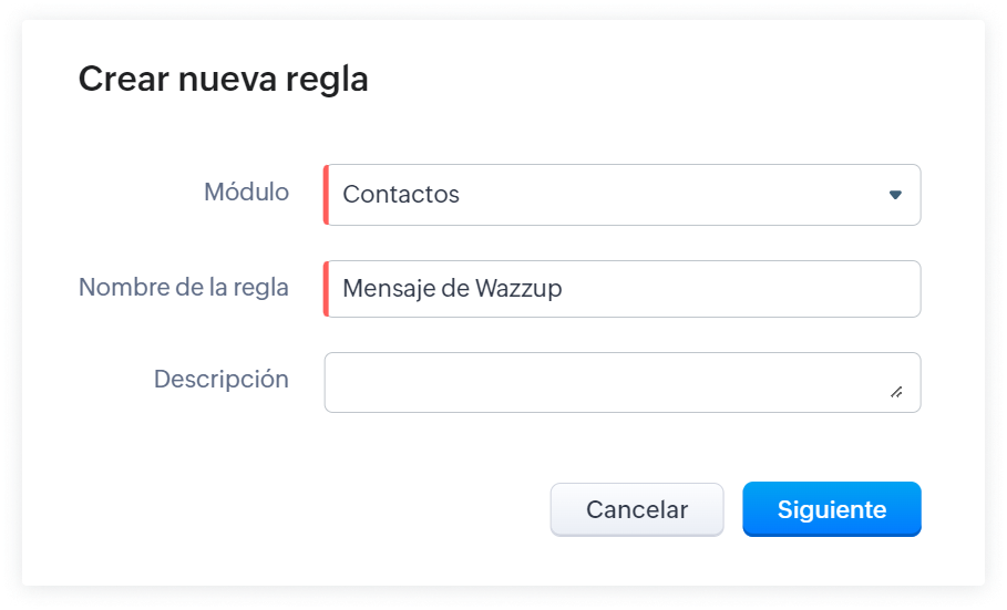 Para enviar mensajes automáticos desde los canales WhatsApp y WABA desde Zoho, utilice la sección Reglas de flujo de trabajo.