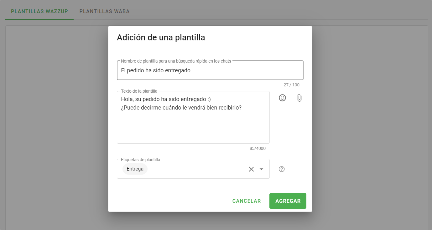 - Añade etiquetas mediante las cuales el vendedor pueda encontrar rápidamente la plantilla en los chats.