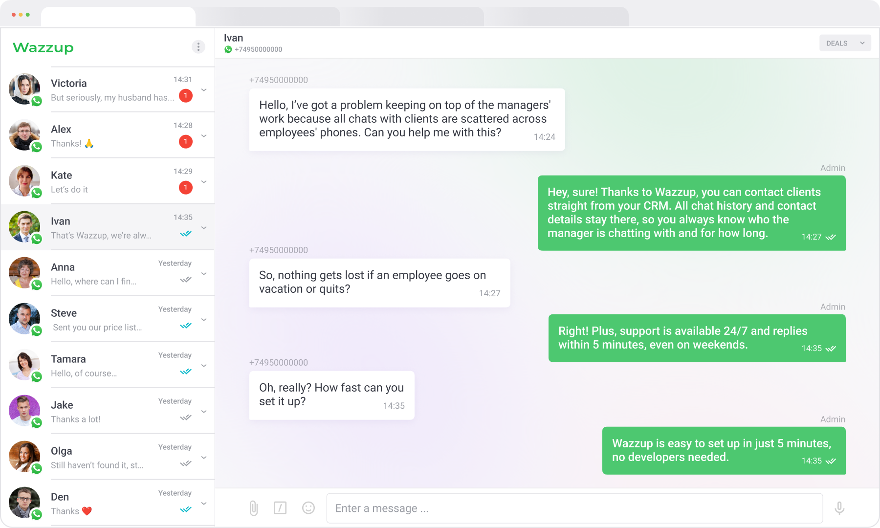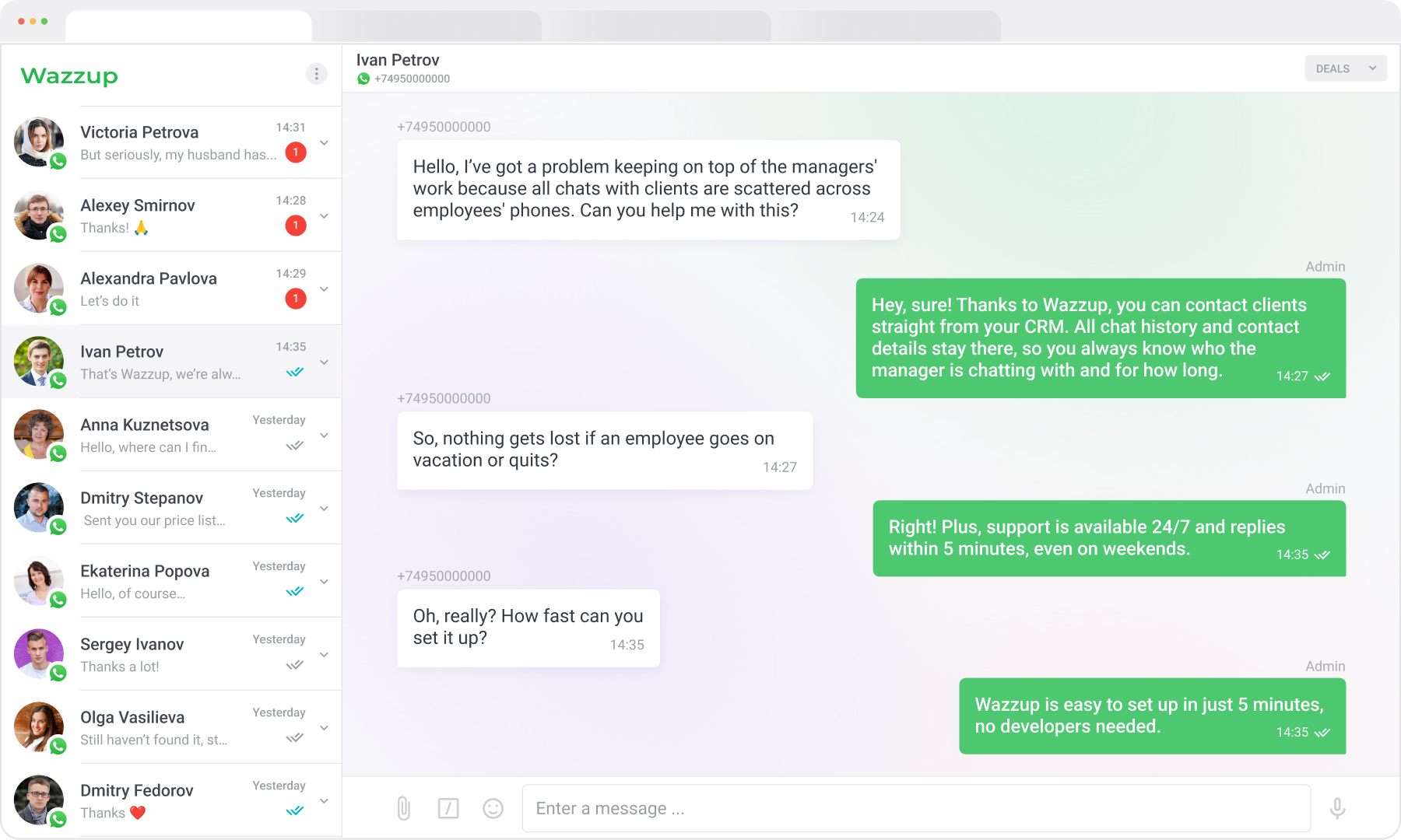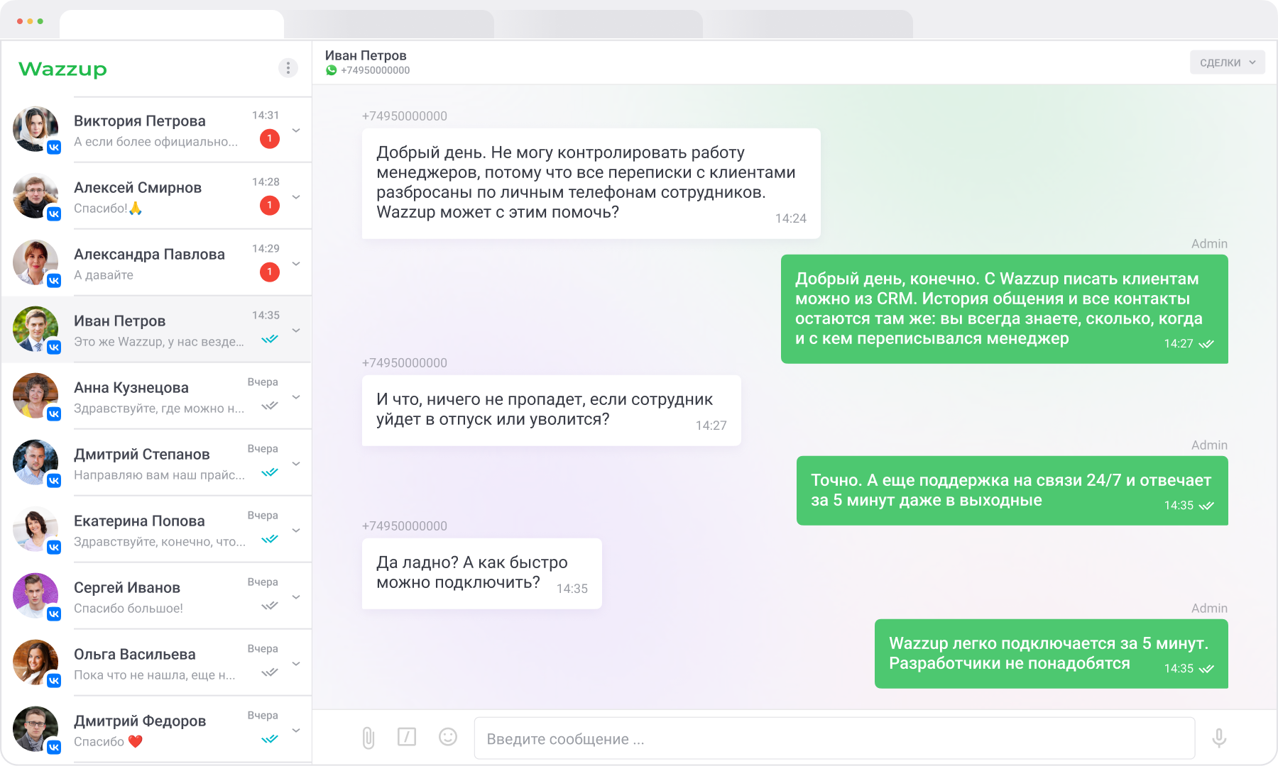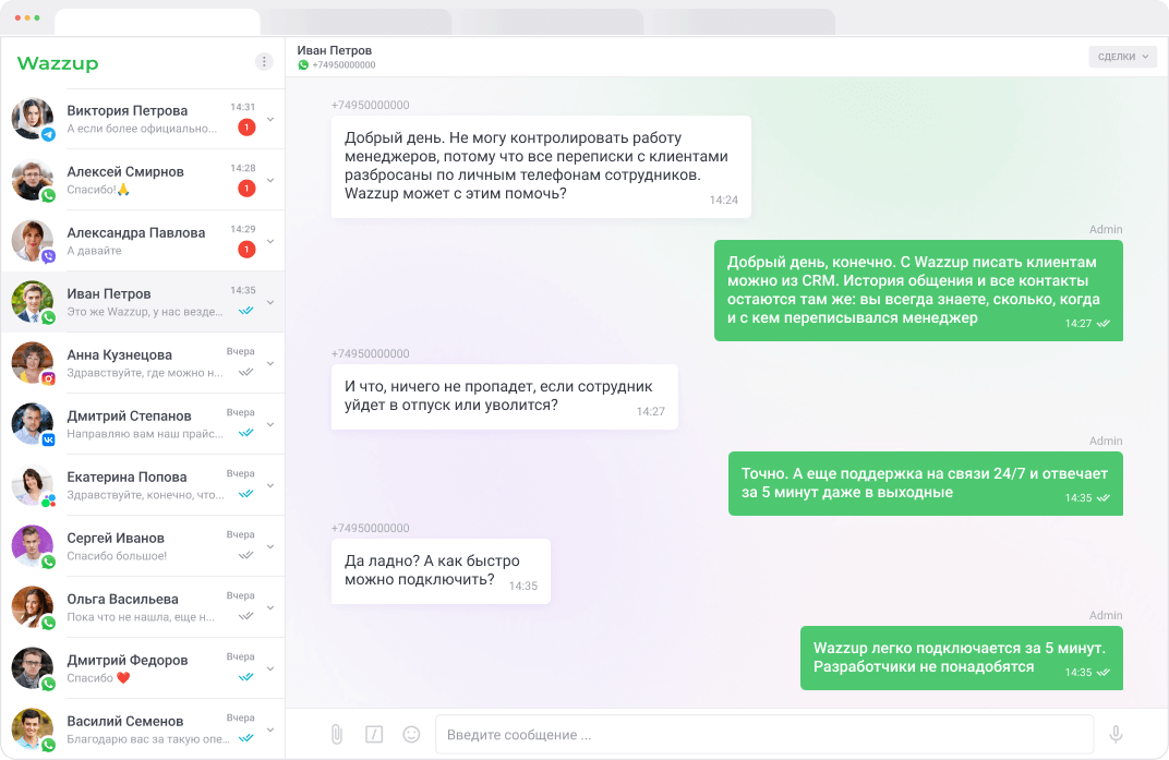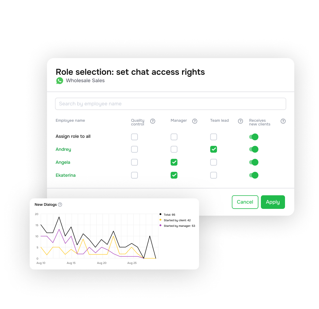 Managers don’t get lost in chats — they only see conversations with their own clients, while the team lead sees everything