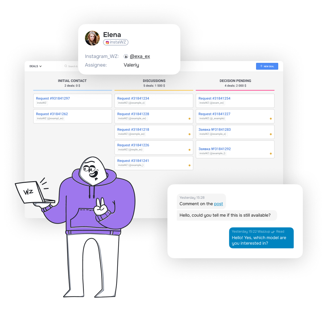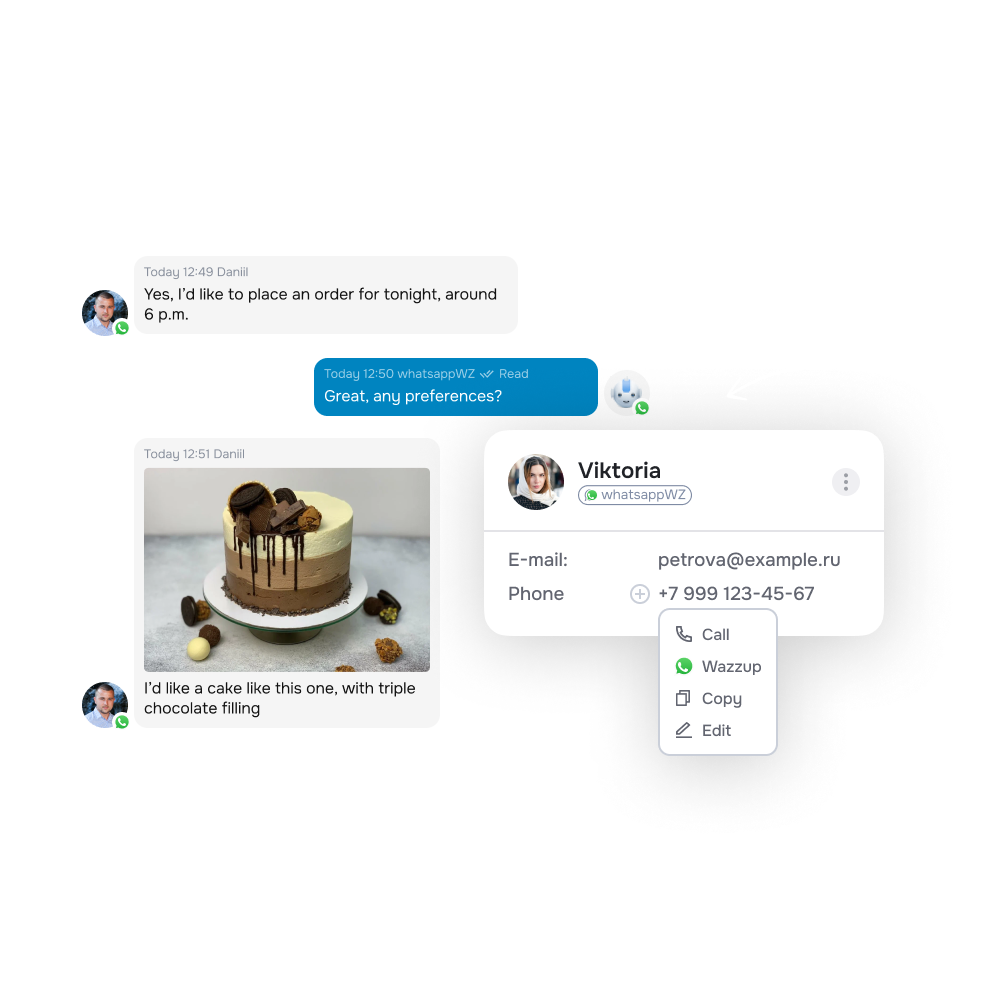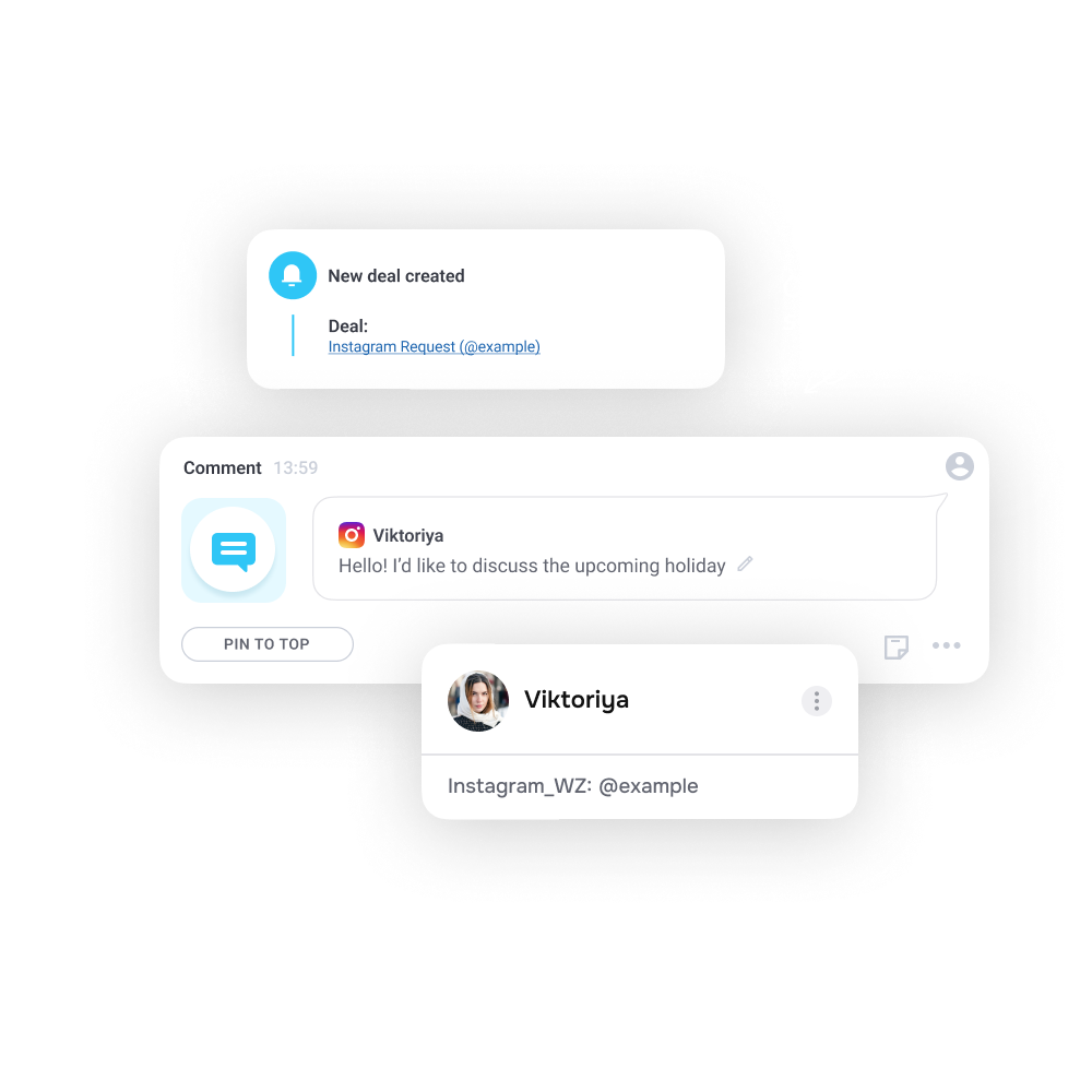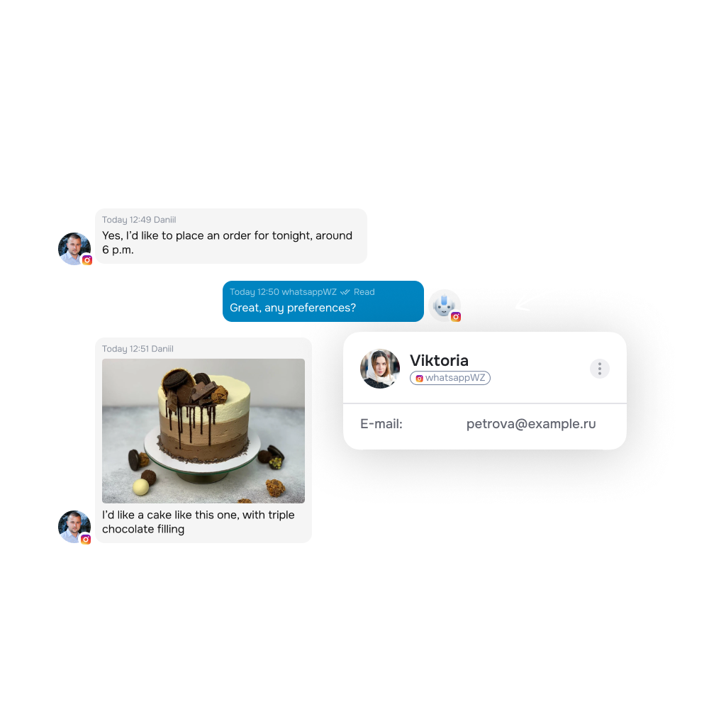Managers can share images in DM right from amoCRM. Less text, more action. Message gets through quickly - everyone is happy