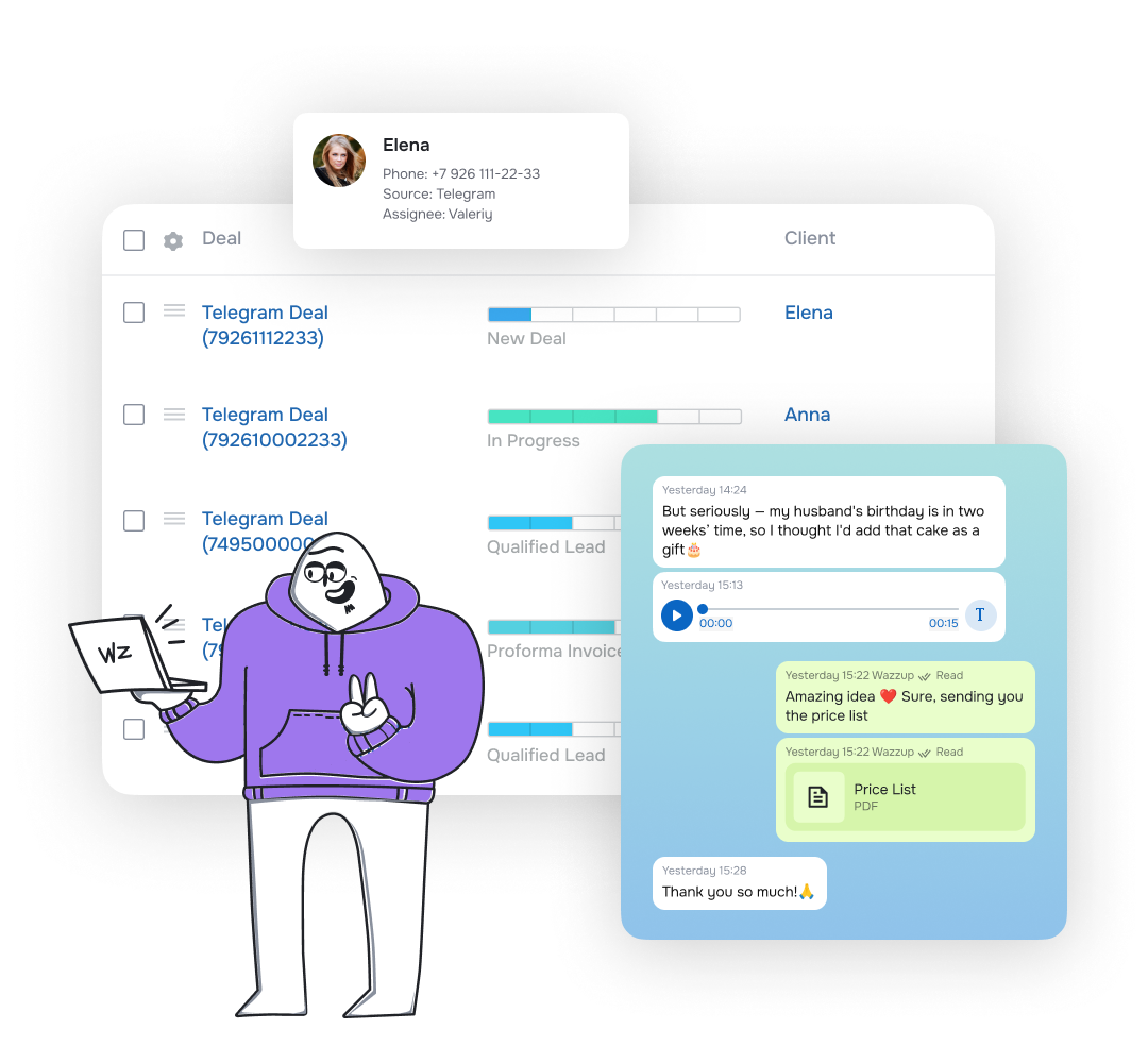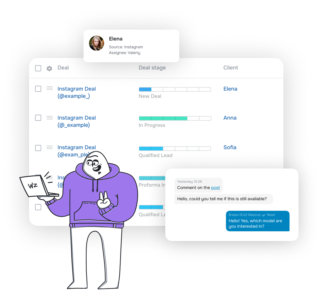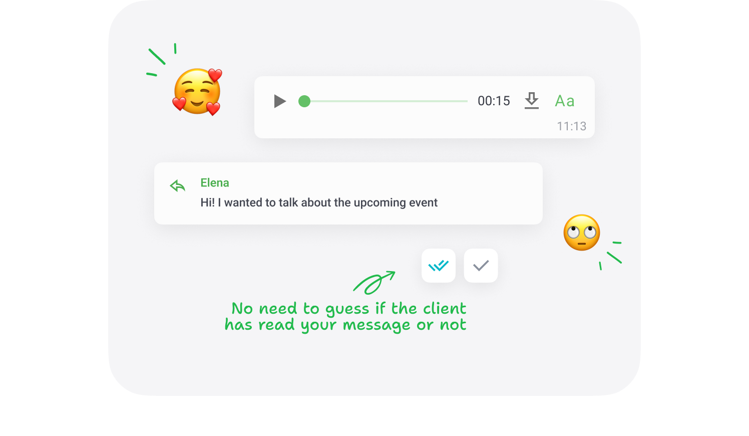 Wazzup keeps all the familiar Instagram features: message statuses, emojis, and voice messages