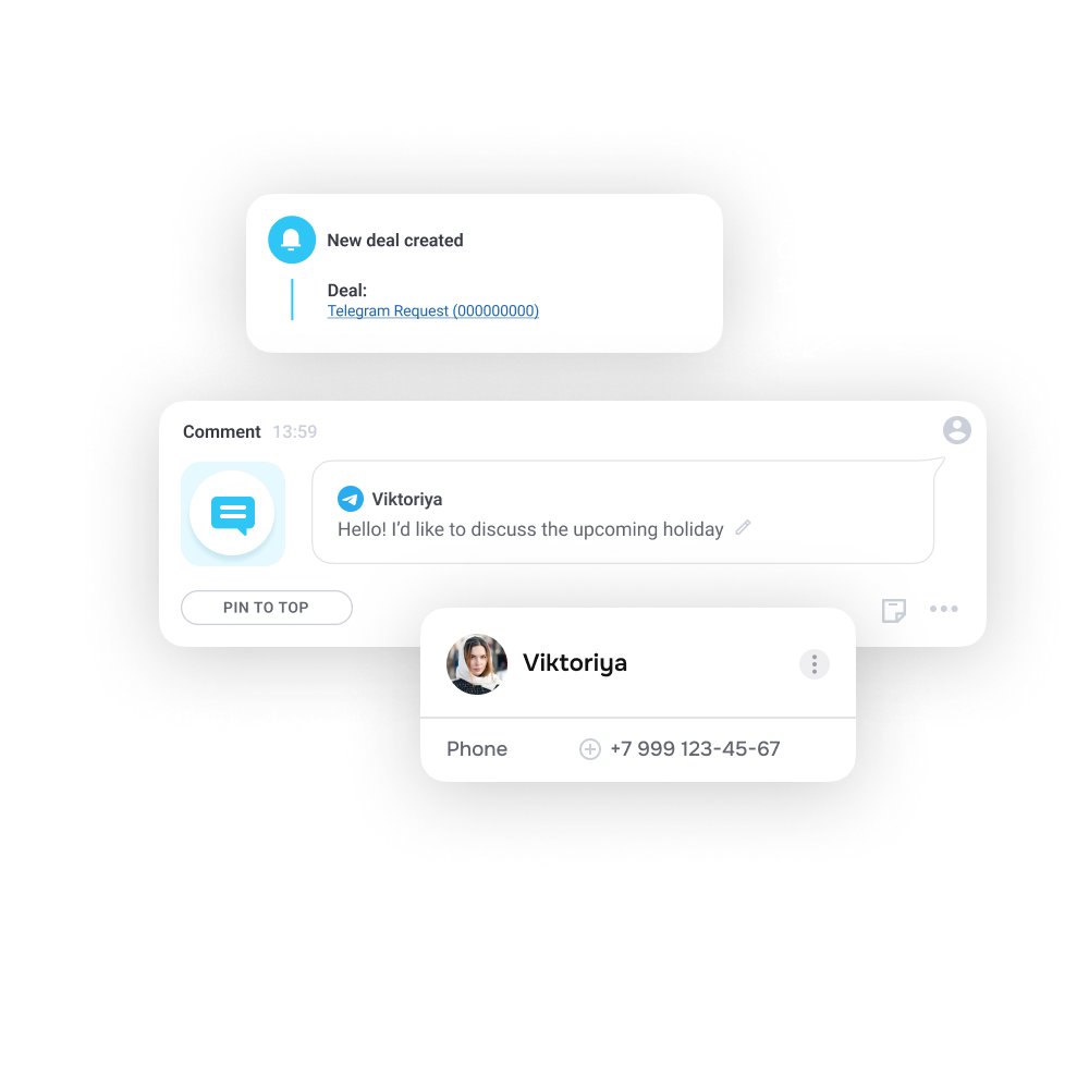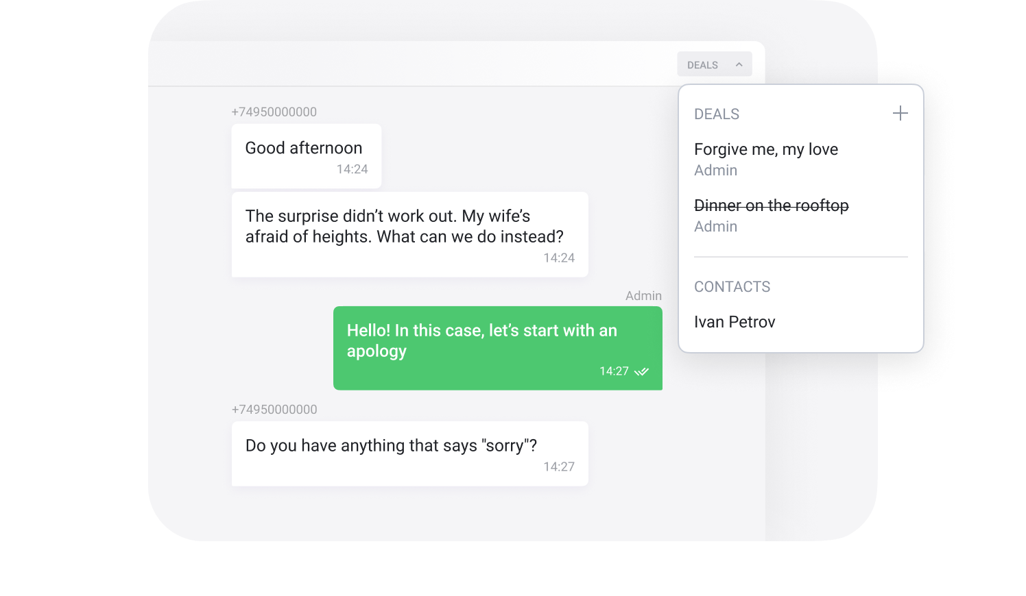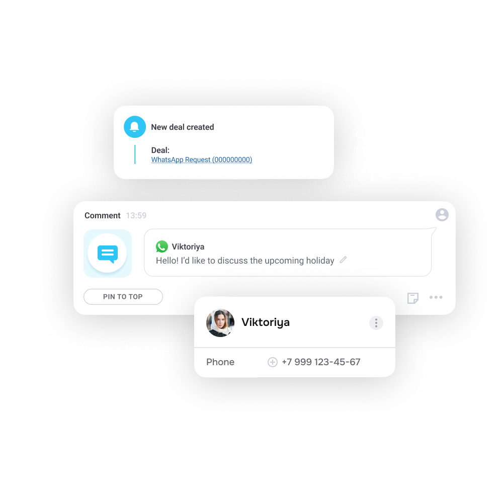 No need to look for clients in the amoCRM. Just click the button and go directly from the chat to the deal