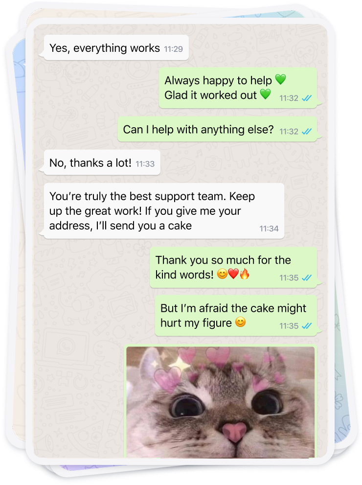 When things get hectic, a manager may read a message but forget to reply. No need to worry! The chat stays at the top of the list, and the notification won’t go away until they send a reply